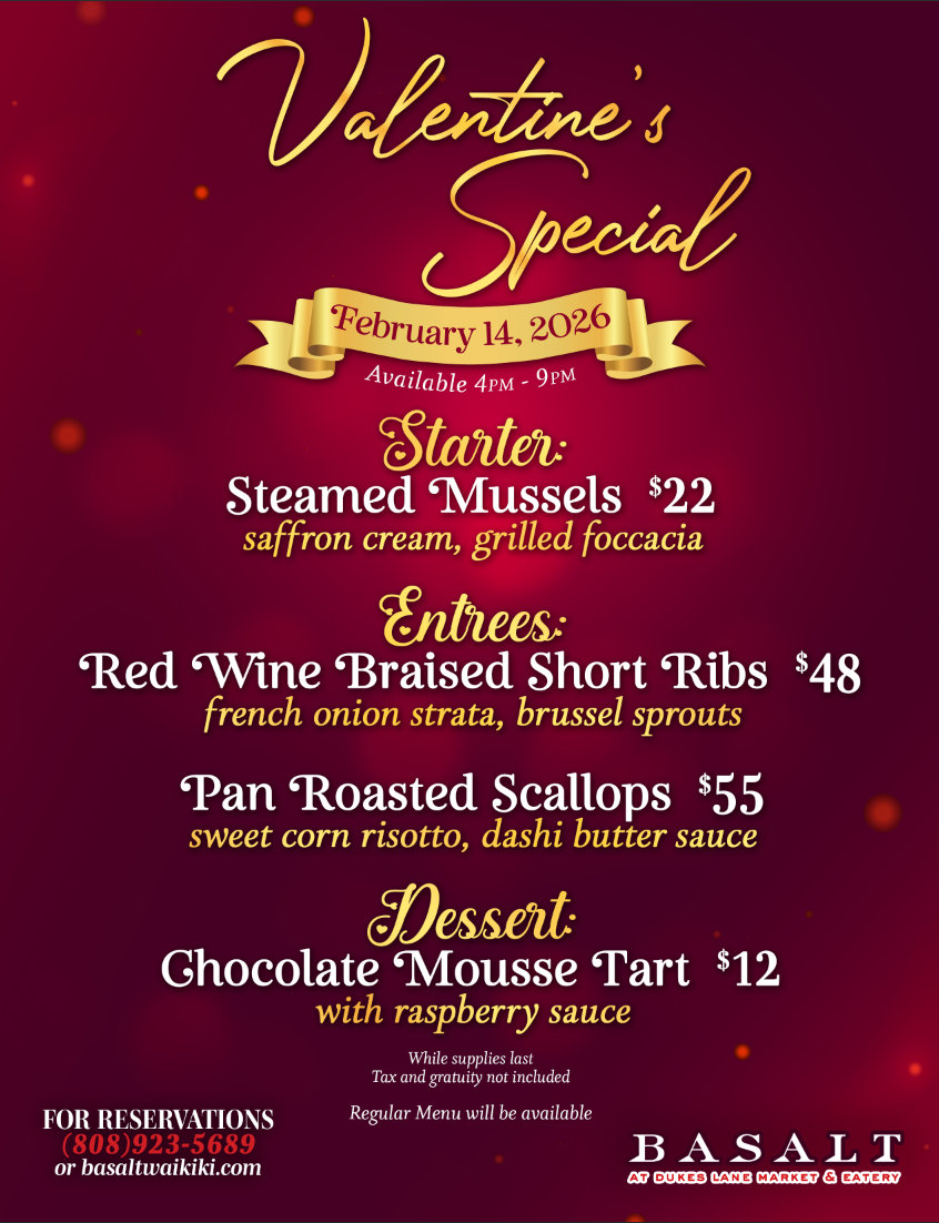 Basalt Restaurant will be temporarily closed on Tuesdays and Wednesdays.